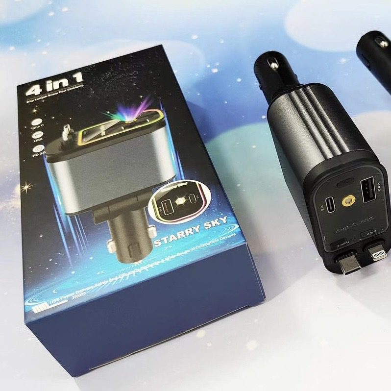 شارژر فندکی 4 کاره فست شارژ 66 واتی با نور کهکشانی مدل B1